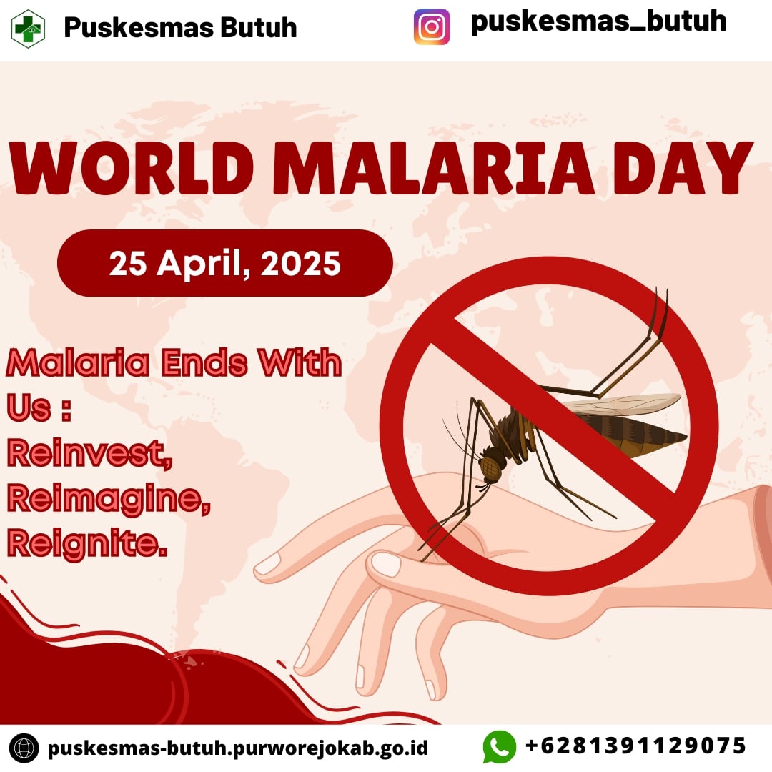 Hari Malaria Sedunia 2025 diperingati pada tanggal 25 April 2025 dengan tema global : “Malaria Ends With Us : Reinvest, Reimagine, Reignite.” Tema ini menekankan pentingnya investasi ulang, inovasi, dan semangat baru dalam upaya global untuk mengakhiri malaria sebagai ancaman kesehatan masyarakat.